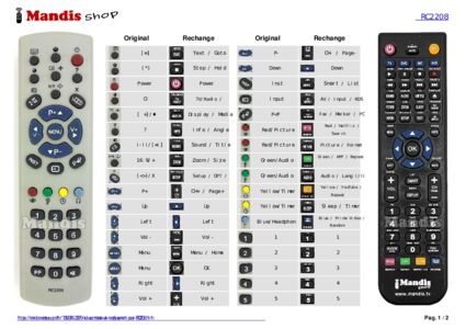 Un document est inclus pour vous aider à utiliser facilement la nouvelle télécommande, en indiquant la correspondance des boutons.