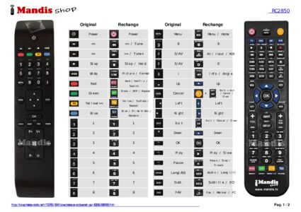 Un document est inclus pour vous aider à utiliser facilement la nouvelle télécommande, en indiquant la correspondance des boutons.