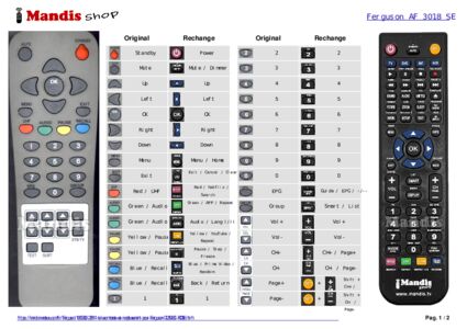 Un document est inclus pour vous aider à utiliser facilement la nouvelle télécommande, en indiquant la correspondance des boutons.