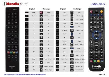 Un document est inclus pour vous aider à utiliser facilement la nouvelle télécommande, en indiquant la correspondance des boutons.