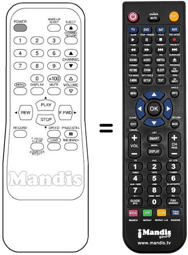 Télécommande qui remplace celle d'origine car elle possède les mêmes fonctions.