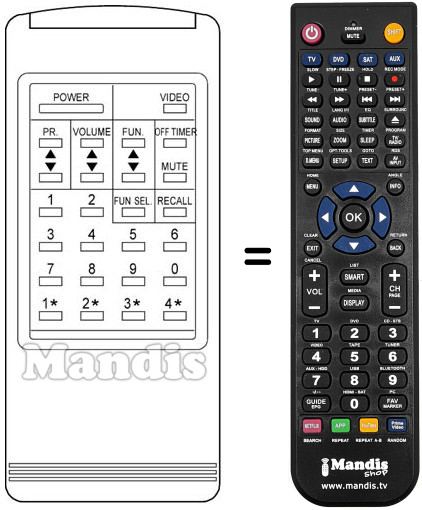 Télécommande qui remplace celle d'origine car elle possède les mêmes fonctions.