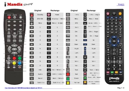 Un document est inclus pour vous aider à utiliser facilement la nouvelle télécommande, en indiquant la correspondance des boutons.