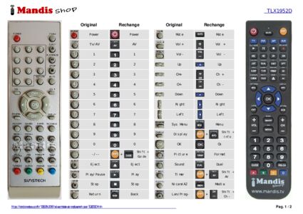 Un document est inclus pour vous aider à utiliser facilement la nouvelle télécommande, en indiquant la correspondance des boutons.