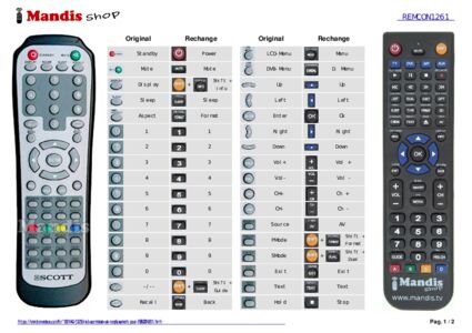 Cette télécommande remplace la plupart des fonctions de votre REMCON1261. Il ne s'agit pas d'une télécommande universelle, mais d'une copie avec la plupart des touches et des fonctions de votre télécommande d'origine.