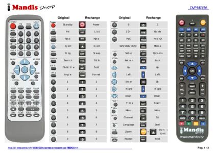 Un document est inclus pour vous aider à utiliser facilement la nouvelle télécommande, en indiquant la correspondance des boutons.