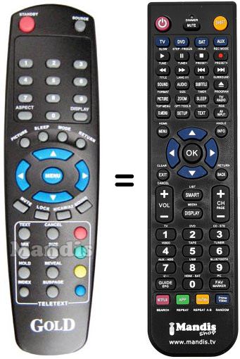 Télécommande qui remplace celle d'origine car elle possède les mêmes fonctions.