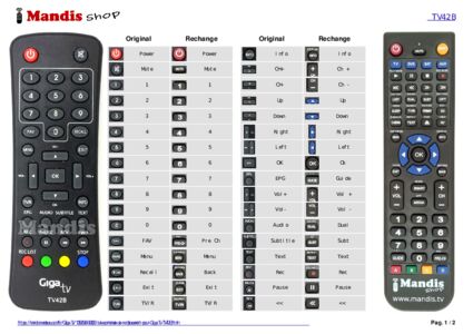 Cette télécommande remplace entièrement votre TV42B et offre toutes les fonctions de l'originale.