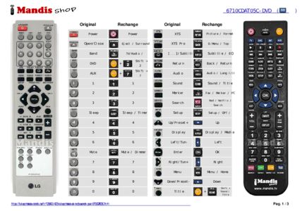 Un document est inclus pour vous aider à utiliser facilement la nouvelle télécommande, en indiquant la correspondance des boutons.
