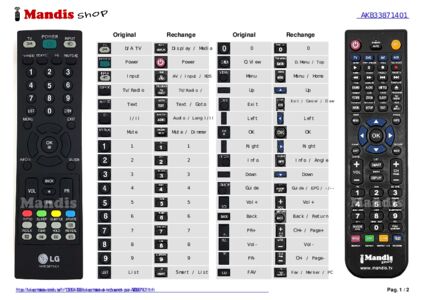 Un document est inclus pour vous aider à utiliser facilement la nouvelle télécommande, en indiquant la correspondance des boutons.