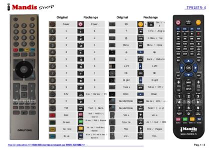 Un document est inclus pour vous aider à utiliser facilement la nouvelle télécommande, en indiquant la correspondance des boutons.