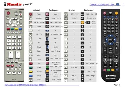Un document est inclus pour vous aider à utiliser facilement la nouvelle télécommande, en indiquant la correspondance des boutons.