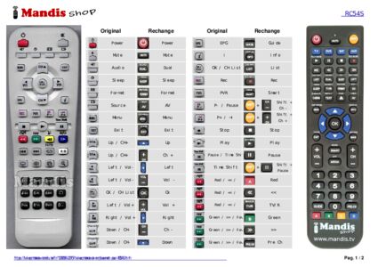 Un document est inclus pour vous aider à utiliser facilement la nouvelle télécommande, en indiquant la correspondance des boutons.