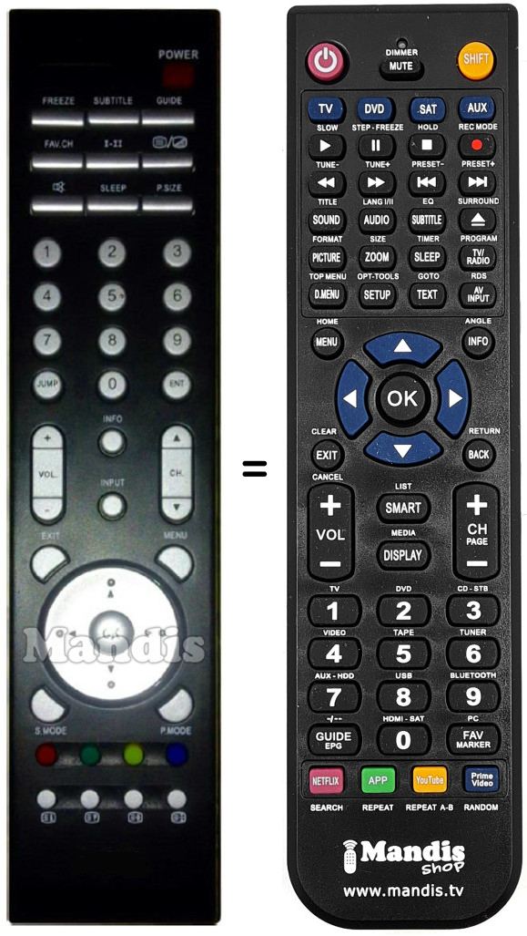 Télécommande qui remplace celle d'origine car elle possède les mêmes fonctions.
