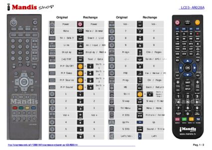 Un document est inclus pour vous aider à utiliser facilement la nouvelle télécommande, en indiquant la correspondance des boutons.