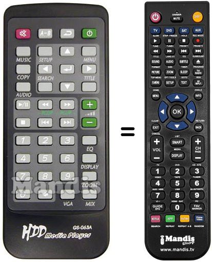 Télécommande qui remplace celle d'origine car elle possède les mêmes fonctions.