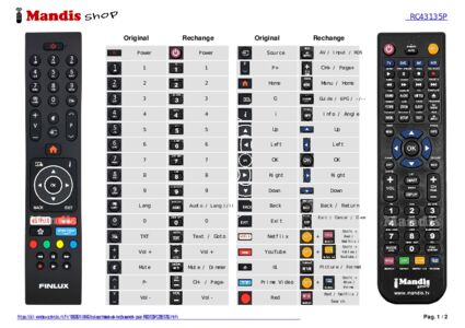 Un document est inclus pour vous aider à utiliser facilement la nouvelle télécommande, en indiquant la correspondance des boutons.