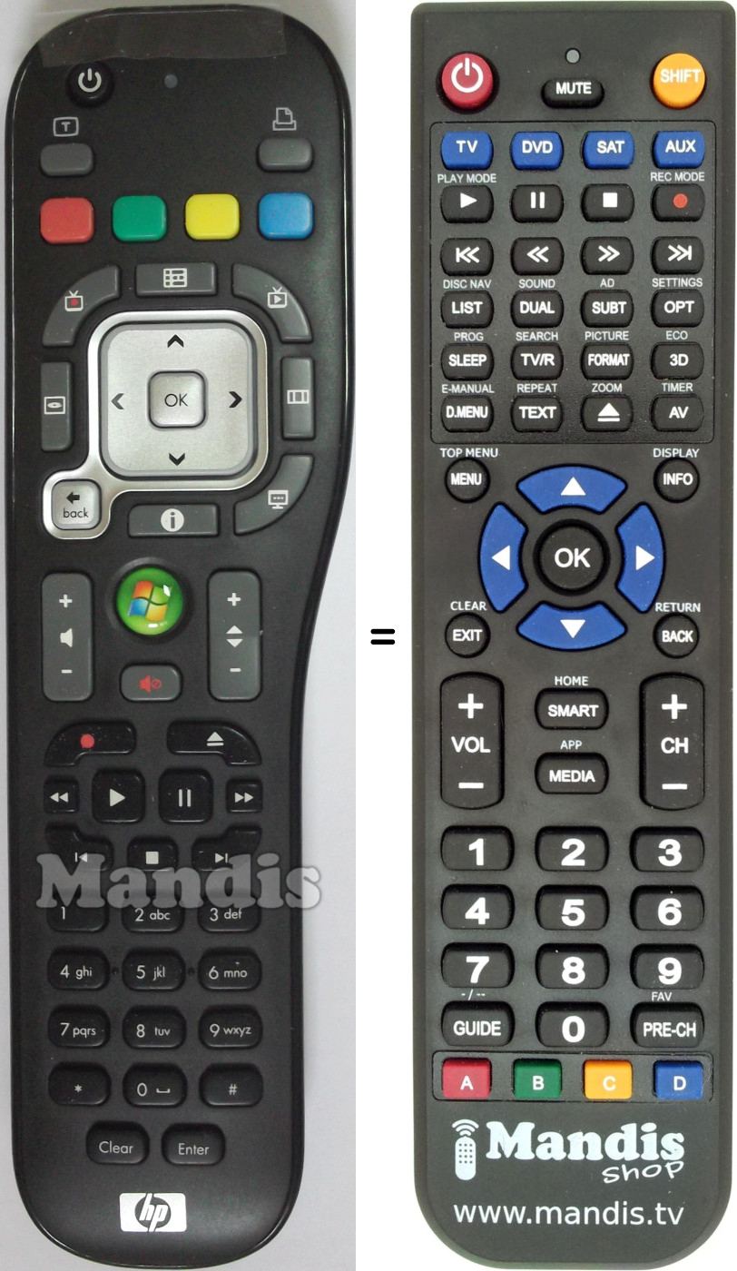Ci-dessous, nous vous montrerons la correspondance entre chaque bouton de la télécommande d'origine et le bouton qui effectue la même fonction sur la télécommande de remplacement. Dans certains cas, vous devrez peut-être appuyer sur la touche SHIFT avant d'appuyer sur un autre bouton pour effectuer certaines actions. Ces fonctions supplémentaires sont souvent peu utilisées et sont incluses pour faciliter la compréhension de la télécommande de remplacement, ou parce que la télécommande d'origine comporte plus de boutons que son équivalent.