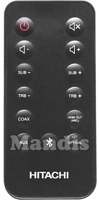 Télécommande d'origine AXS240BTU pour soundbar de la marque Hitachi. Il s'agit d'un modèle de télécommande d'origine.