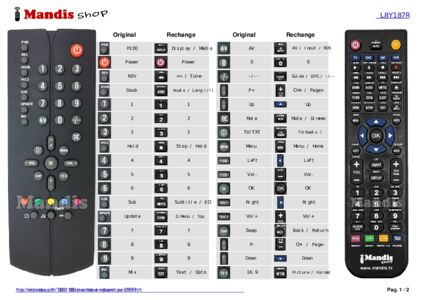 Cette télécommande remplace entièrement votre L8Y187R et offre toutes les fonctions de l'originale.