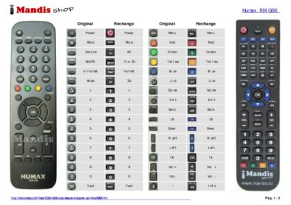 Accueil > Marques > Télécommandes Humax > Télécommande pour HUMAX RM-G08