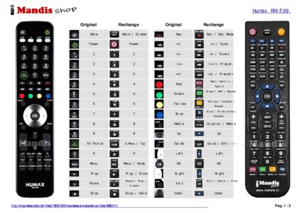 Un document est inclus pour vous aider à utiliser facilement la nouvelle télécommande, en indiquant la correspondance des boutons.