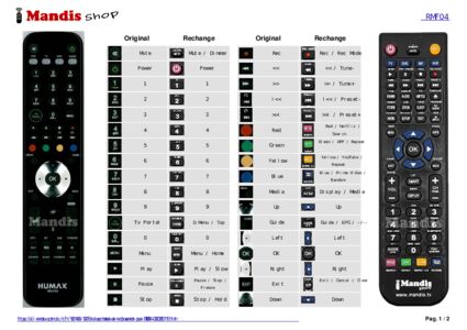 Un document est inclus pour vous aider à utiliser facilement la nouvelle télécommande, en indiquant la correspondance des boutons.