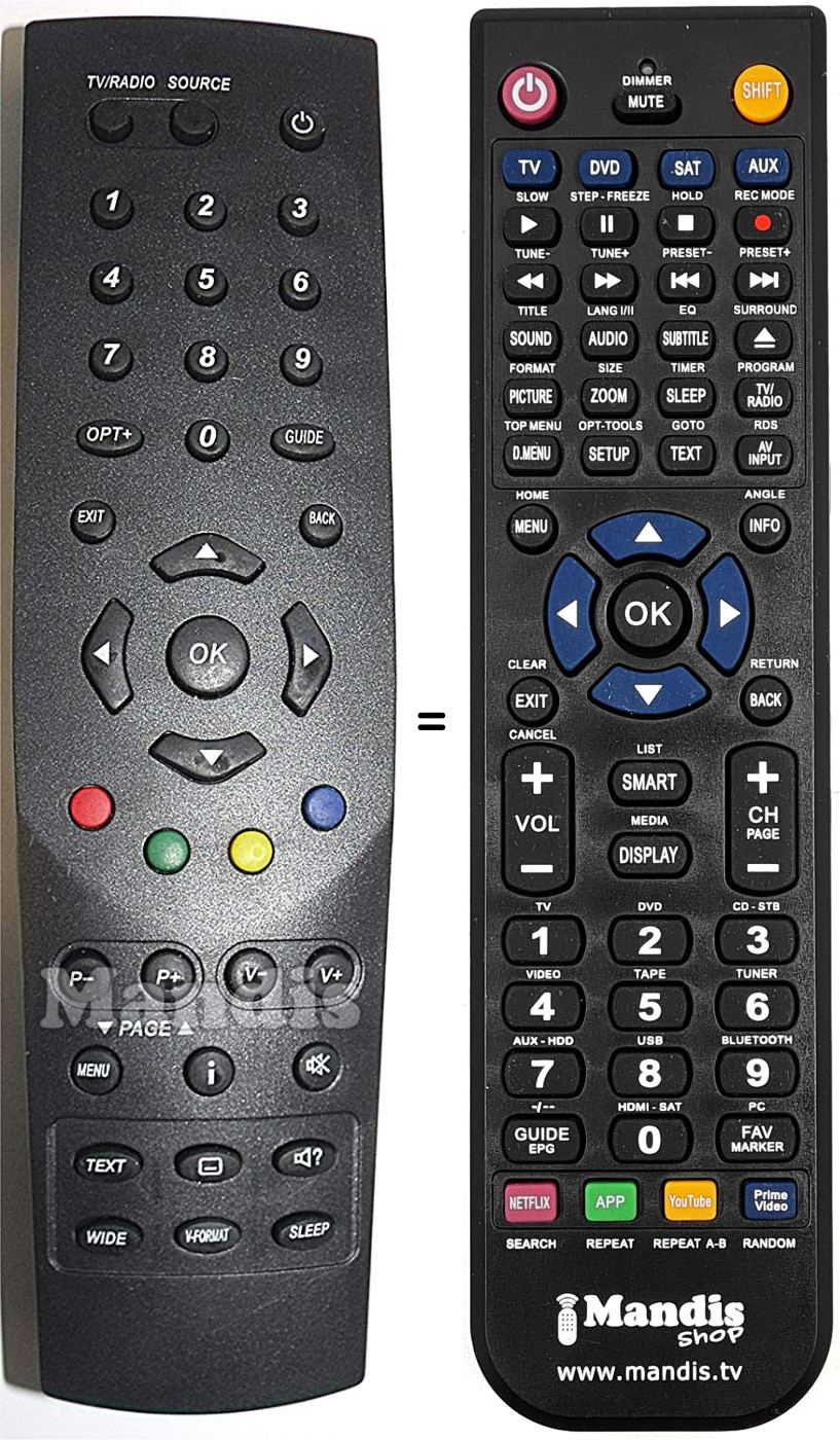 Télécommande qui remplace celle d'origine car elle possède les mêmes fonctions.