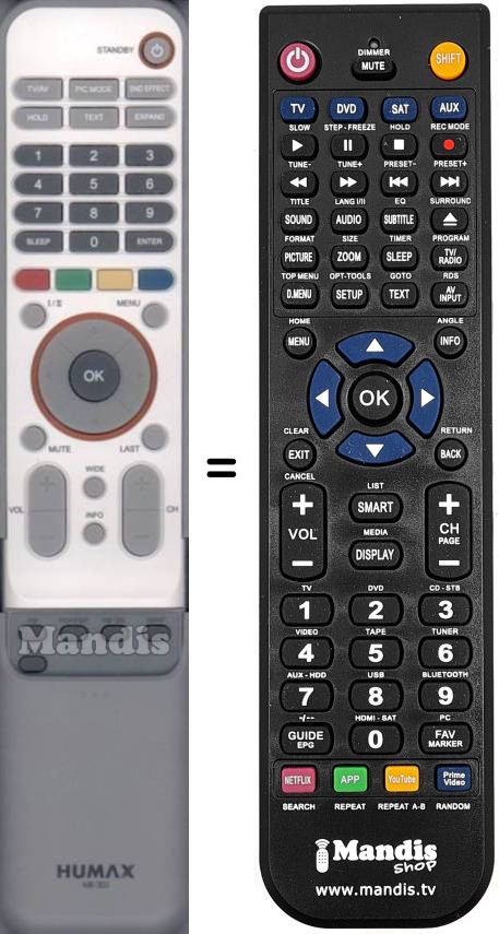 Télécommande qui remplace celle d'origine car elle possède les mêmes fonctions.