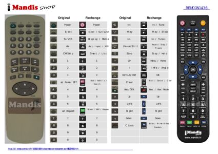 Un document est inclus pour vous aider à utiliser facilement la nouvelle télécommande, en indiquant la correspondance des boutons.