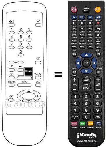 Télécommande qui remplace celle d'origine car elle possède les mêmes fonctions.