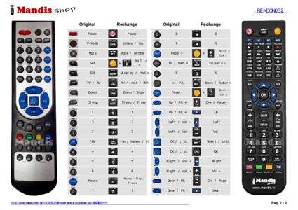 Un document est inclus pour vous aider à utiliser facilement la nouvelle télécommande, en indiquant la correspondance des boutons.
