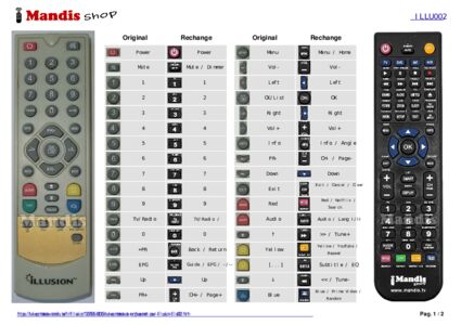 Cette télécommande remplace entièrement votre Illu002 et offre toutes les fonctions de l'originale.