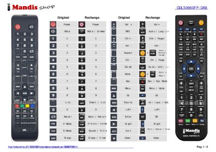 Cette télécommande remplace entièrement votre ODL50660FP-DAB et offre toutes les fonctions de l'originale.