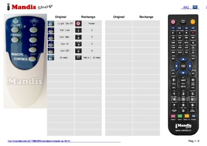 Cette télécommande remplace entièrement votre AA1 et offre toutes les fonctions de l'originale.