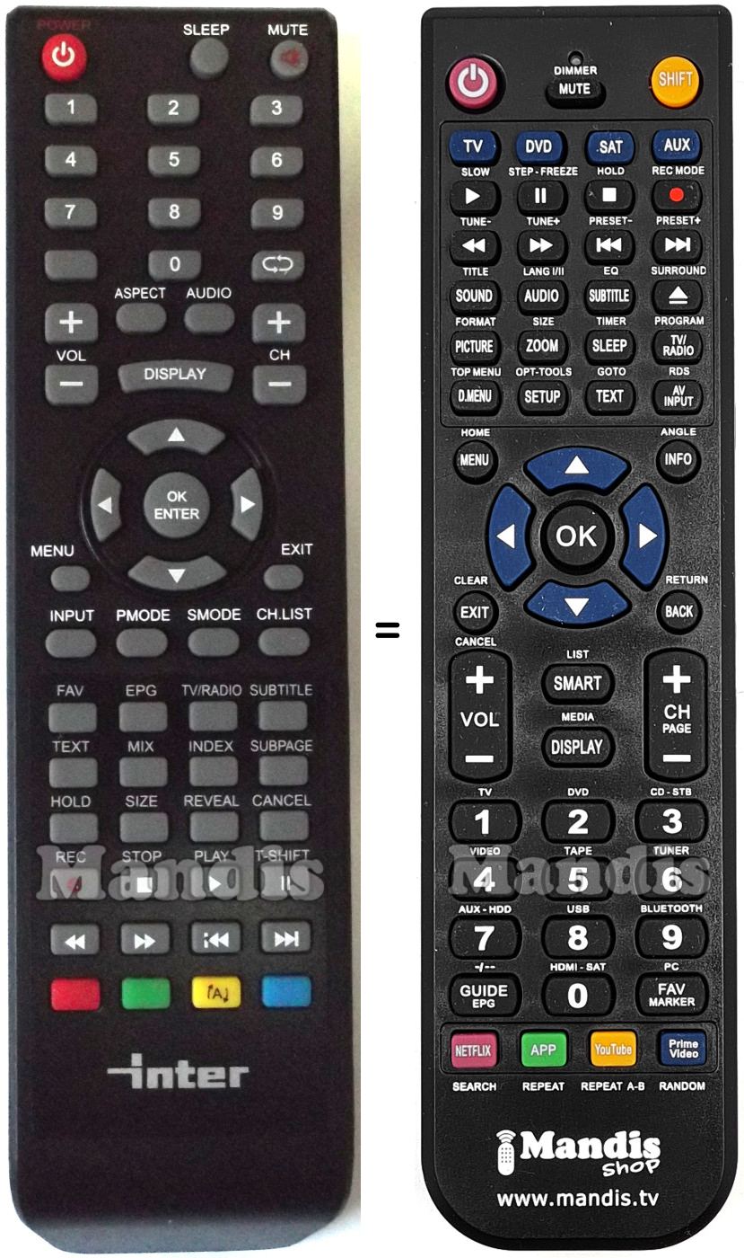 Ci-dessous, nous vous montrerons la correspondance entre chaque bouton de la télécommande d'origine et le bouton qui effectue la même fonction sur la télécommande de remplacement. Dans certains cas, vous devrez peut-être appuyer sur la touche SHIFT avant d'appuyer sur un autre bouton pour effectuer certaines actions. Ces fonctions supplémentaires sont souvent peu utilisées et sont incluses pour faciliter la compréhension de la télécommande de remplacement, ou parce que la télécommande d'origine comporte plus de boutons que son équivalent.