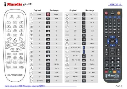 Un document est inclus pour vous aider à utiliser facilement la nouvelle télécommande, en indiquant la correspondance des boutons.