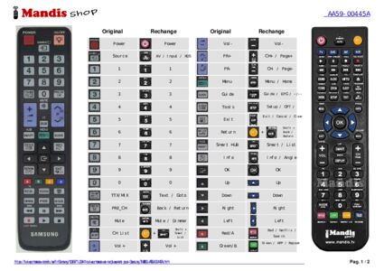 Un document est inclus pour vous aider à utiliser facilement la nouvelle télécommande, en indiquant la correspondance des boutons.