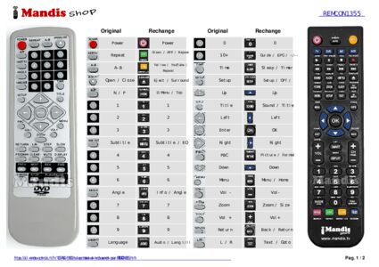 Un document est inclus pour vous aider à utiliser facilement la nouvelle télécommande, en indiquant la correspondance des boutons.