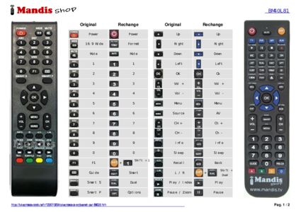 Un document est inclus pour vous aider à utiliser facilement la nouvelle télécommande, en indiquant la correspondance des boutons.