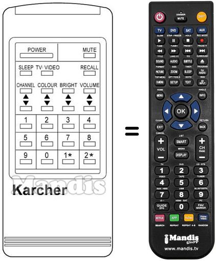 Télécommande qui remplace celle d'origine car elle possède les mêmes fonctions.