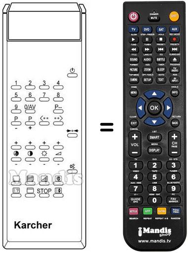Télécommande qui remplace celle d'origine car elle possède les mêmes fonctions.