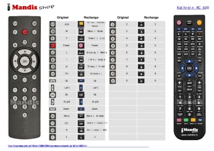 Un document est inclus pour vous aider à utiliser facilement la nouvelle télécommande, en indiquant la correspondance des boutons.