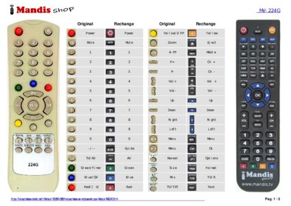 Cette télécommande remplace entièrement votre MV-224G et offre toutes les fonctions de l'originale.