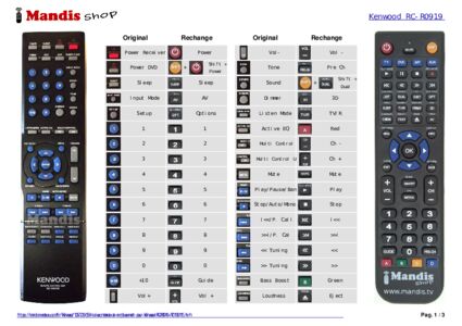 Un document est inclus pour vous aider à utiliser facilement la nouvelle télécommande, en indiquant la correspondance des boutons.