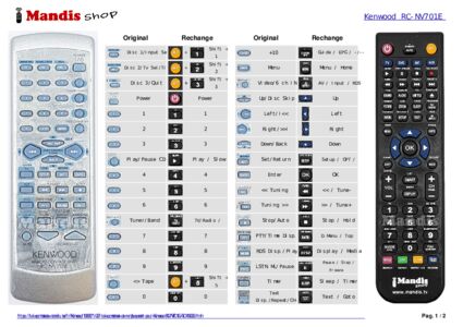 Question sur Kenwood RC-NV701E (A70146008) remote control