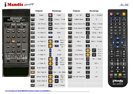 Accueil > Marques > Télécommandes Kenwood > Télécommande pour KENWOOD RC45E
