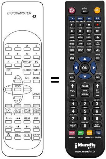 Télécommande qui remplace celle d'origine car elle possède les mêmes fonctions.