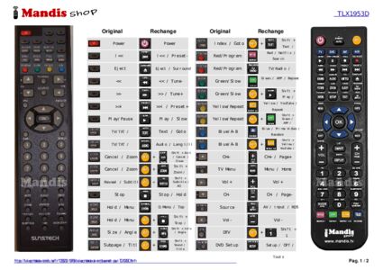 Un document est inclus pour vous aider à utiliser facilement la nouvelle télécommande, en indiquant la correspondance des boutons.