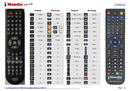 Cette télécommande remplace entièrement votre TLXR2265 et offre toutes les fonctions de l'originale.